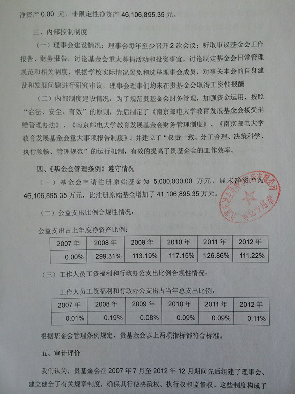2013年南京邮电大学教育发展基金会第一届理事会工作情况审计报告